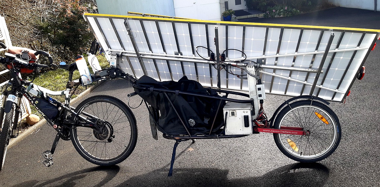 During the Sun Trip Alpes 2023, Béatrice’s bike suffered major damage: a gust of wind at the Stelvio Pass (2,758 m) overturned the trailer, breaking the additional solar panels, and on the way home a hailstorm damaged the panels that were still exposed, causing them to lose 30% of their power.